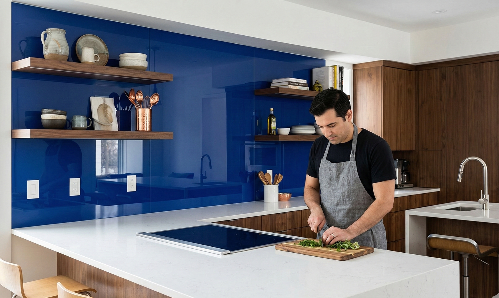 For the modern kitchen or high-use workspace, glass is the ultimate upgrade from tile. We specialize in out-of-square configurations, ensuring a seamless, grout-free fit even in older builds or unique architectural layouts. It is as hygienic as it is visually striking.