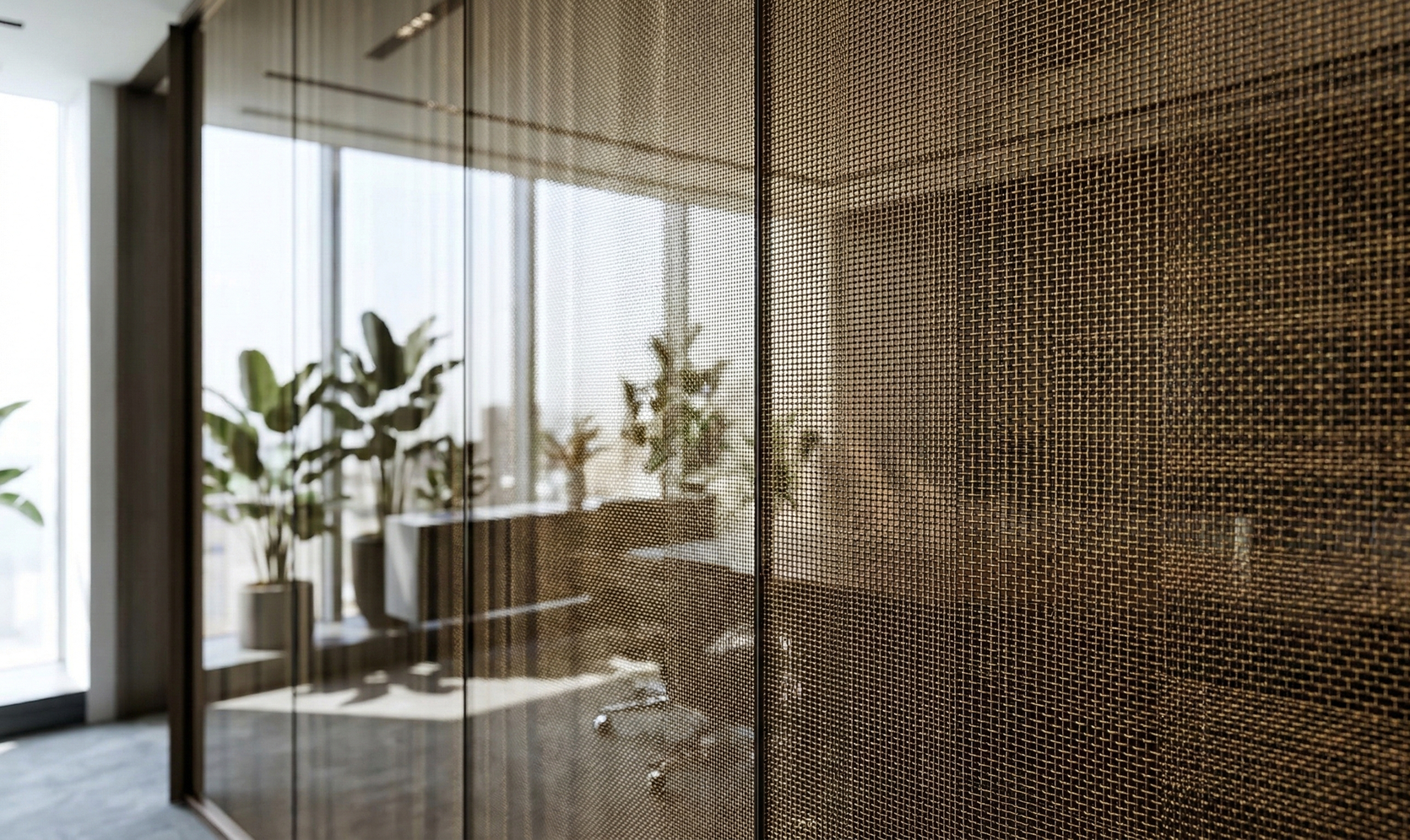 Add organic depth by laminating architectural metal mesh or fine textiles. This creates a sophisticated play of light and shadow, offering varying levels of privacy for residential partitions or executive suites.