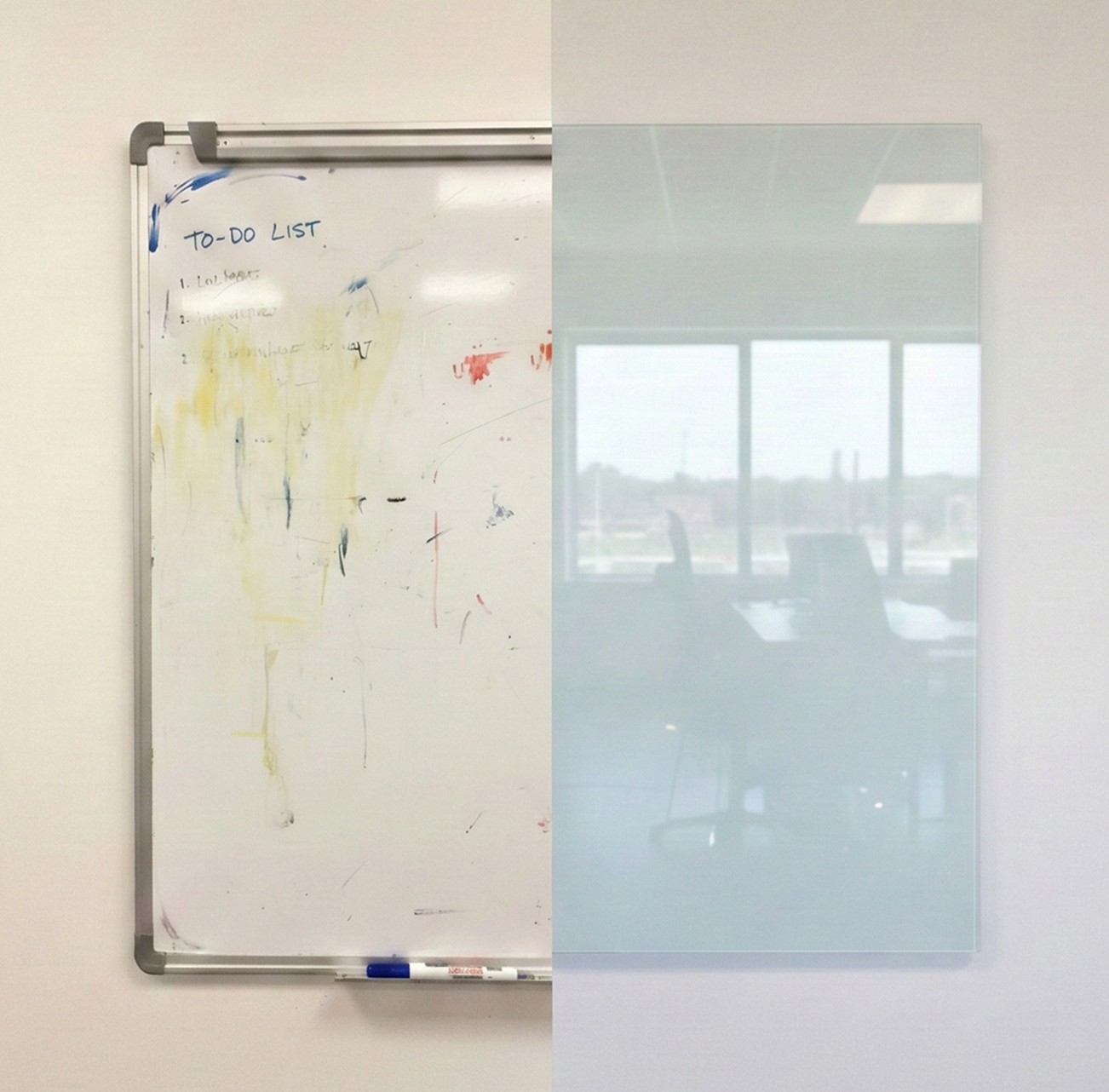 Seamless Large-Scale Walls: We specialize in floor-to-ceiling glass writing walls and custom-cut shapes, including precision notches for outlets, monitors, and light switches.